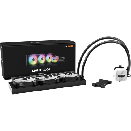 Découvrez le Be Quiet! Light Loop 360mm (BW022), un système de refroidissement liquide tout-en-un conçu pour offrir des performances thermiques exceptionnelles tout en maintenant un silence absolu. Doté d’un radiateur de 360 mm en aluminium et de trois ventilateurs Light Wings 120 mm à contrôle PWM, il garantit un flux d’air puissant et un fonctionnement ultra-silencieux, même sous forte charge. Son éclairage ARGB spectaculaire, entièrement personnalisable et synchronisable avec les principales plateformes (ASUS Aura Sync, MSI Mystic Light, etc.), ajoute une touche de style haut de gamme à votre configuration. Compatible avec les derniers sockets Intel (LGA 1700, 1851) et AMD (AM4, AM5), il s’installe facilement grâce à son système de fixation intuitif et ses tuyaux renforcés longue durée. Conçu pour les joueurs, créateurs et passionnés de performance, le Be Quiet! BW022 allie refroidissement extrême, silence total et design soigné dans un seul et même produit, pour sublimer votre PC autant qu’il le protège.