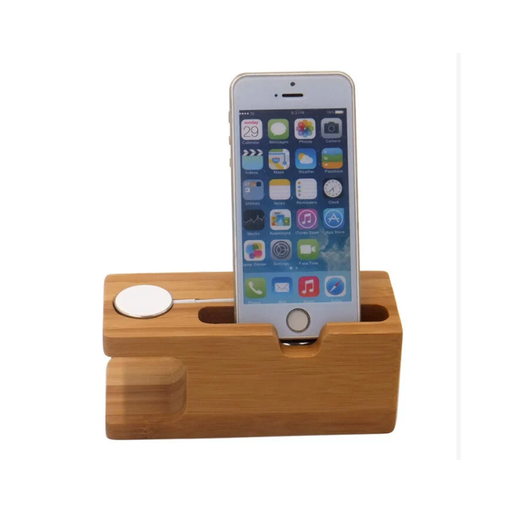 Le support deux-en-un en bambou et bois est spécialement conçu pour votre Apple Watch et votre iPhone afin de garder votre appareil stable et de fournir une expérience de visionnement confortable.